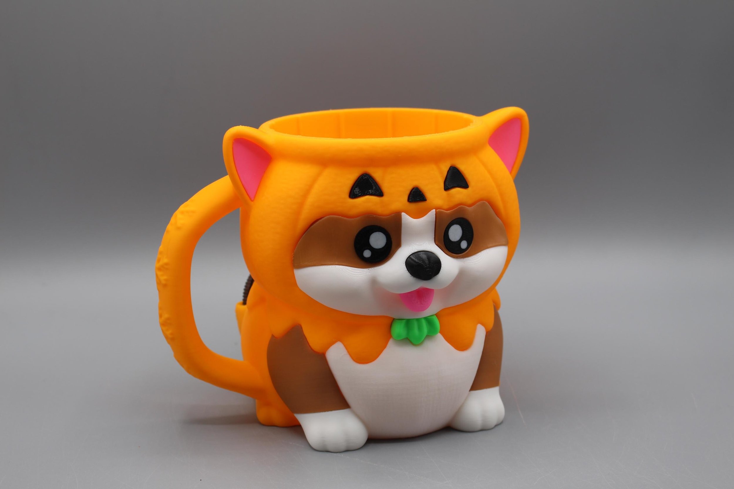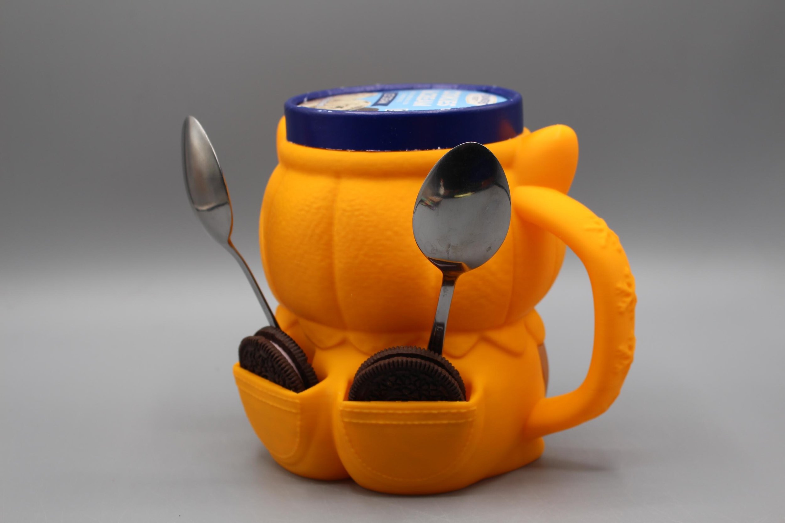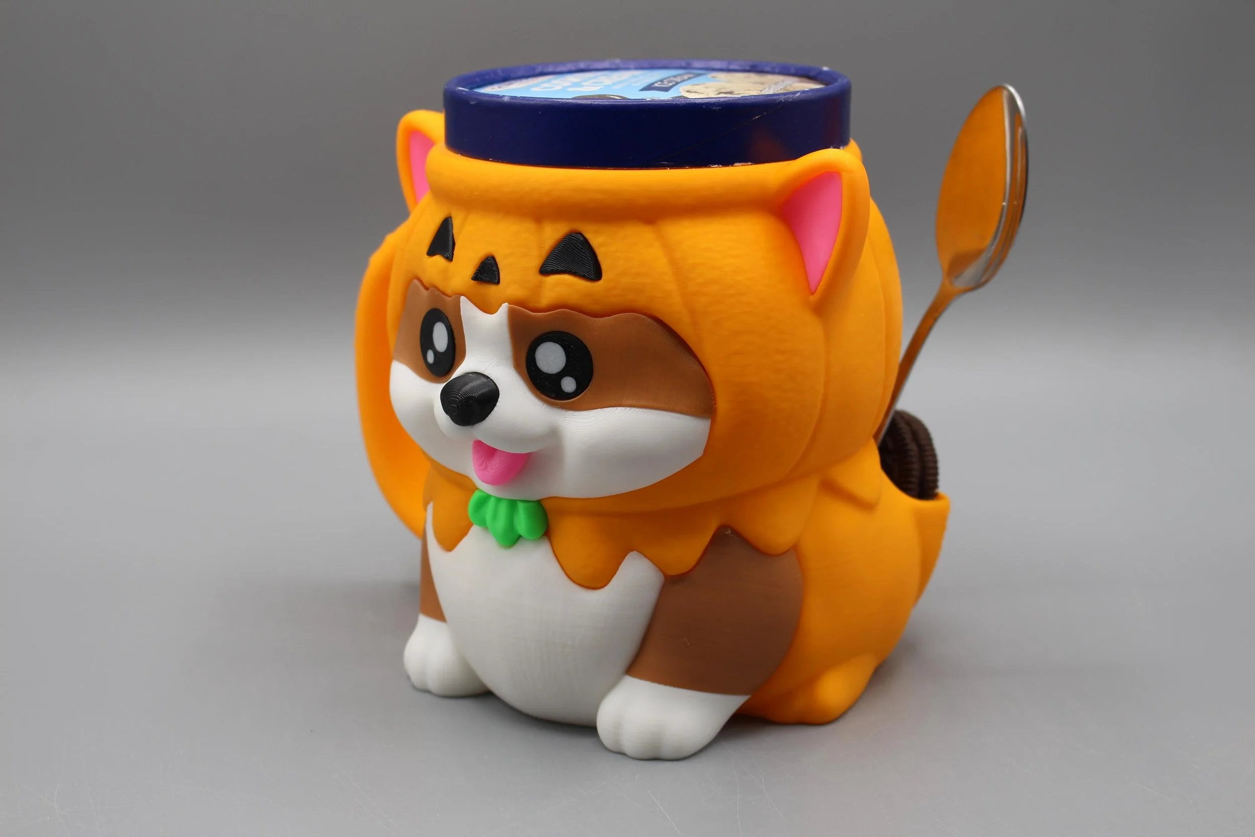 Corgi Dog in Pumpkin Costume Pint Ice Cream Holder Mug w/2 Spoon Holders and Cookie Pockets | 3D Printed Reusable Ice Cream Cozy