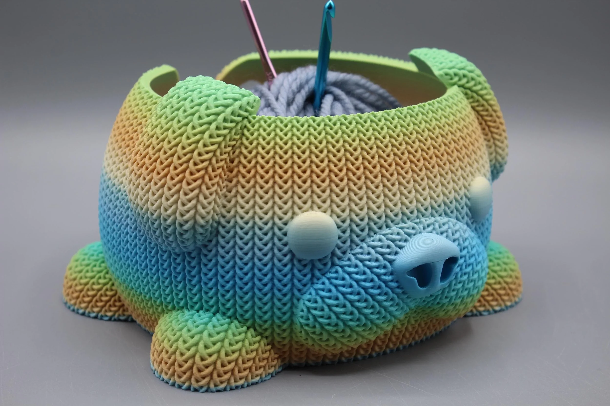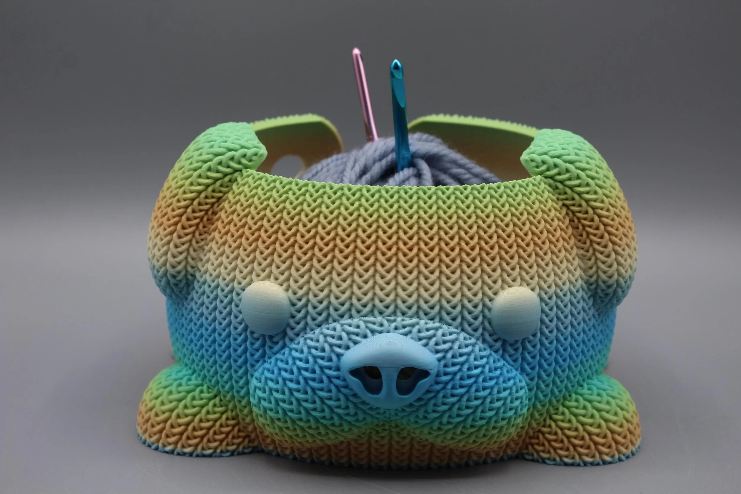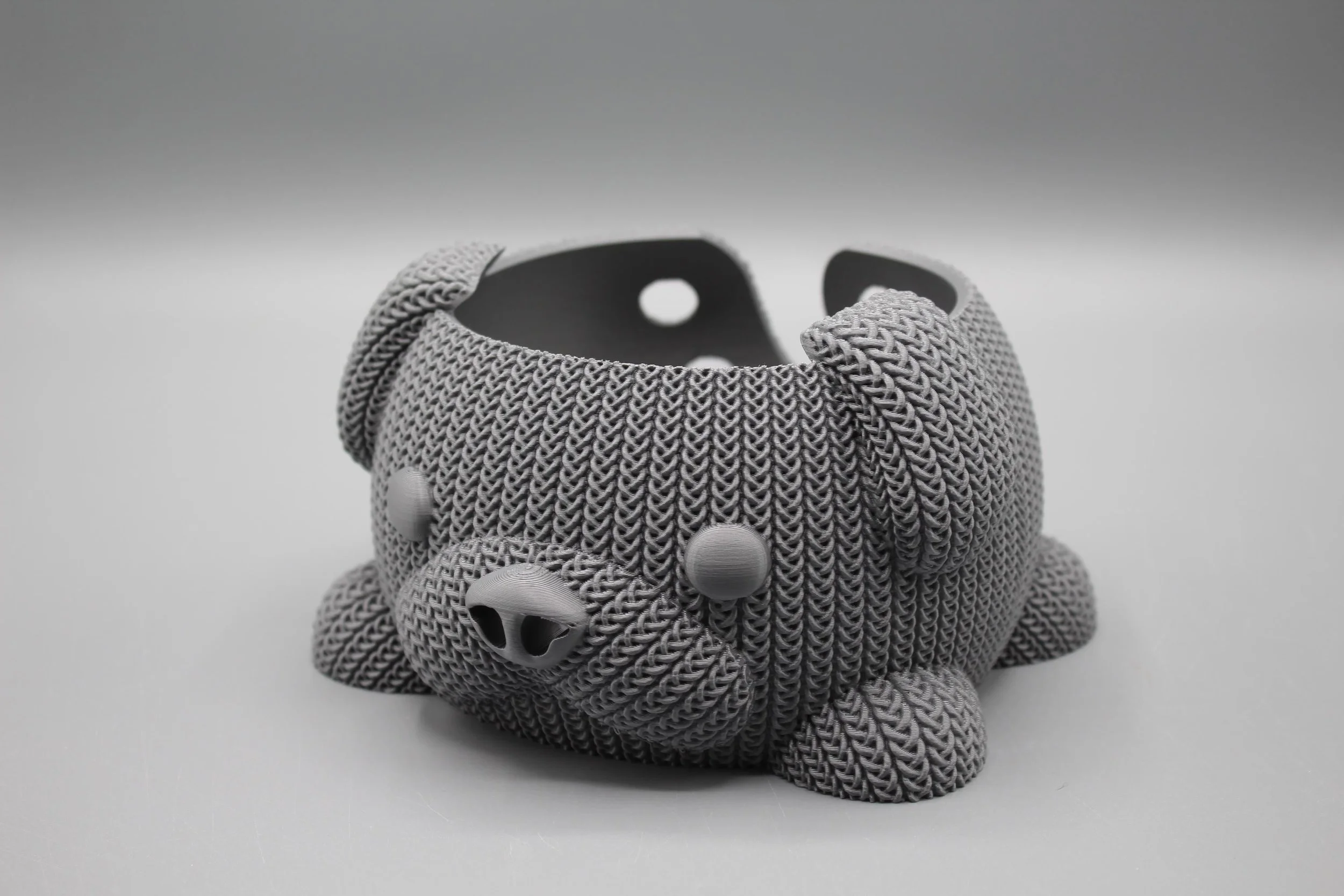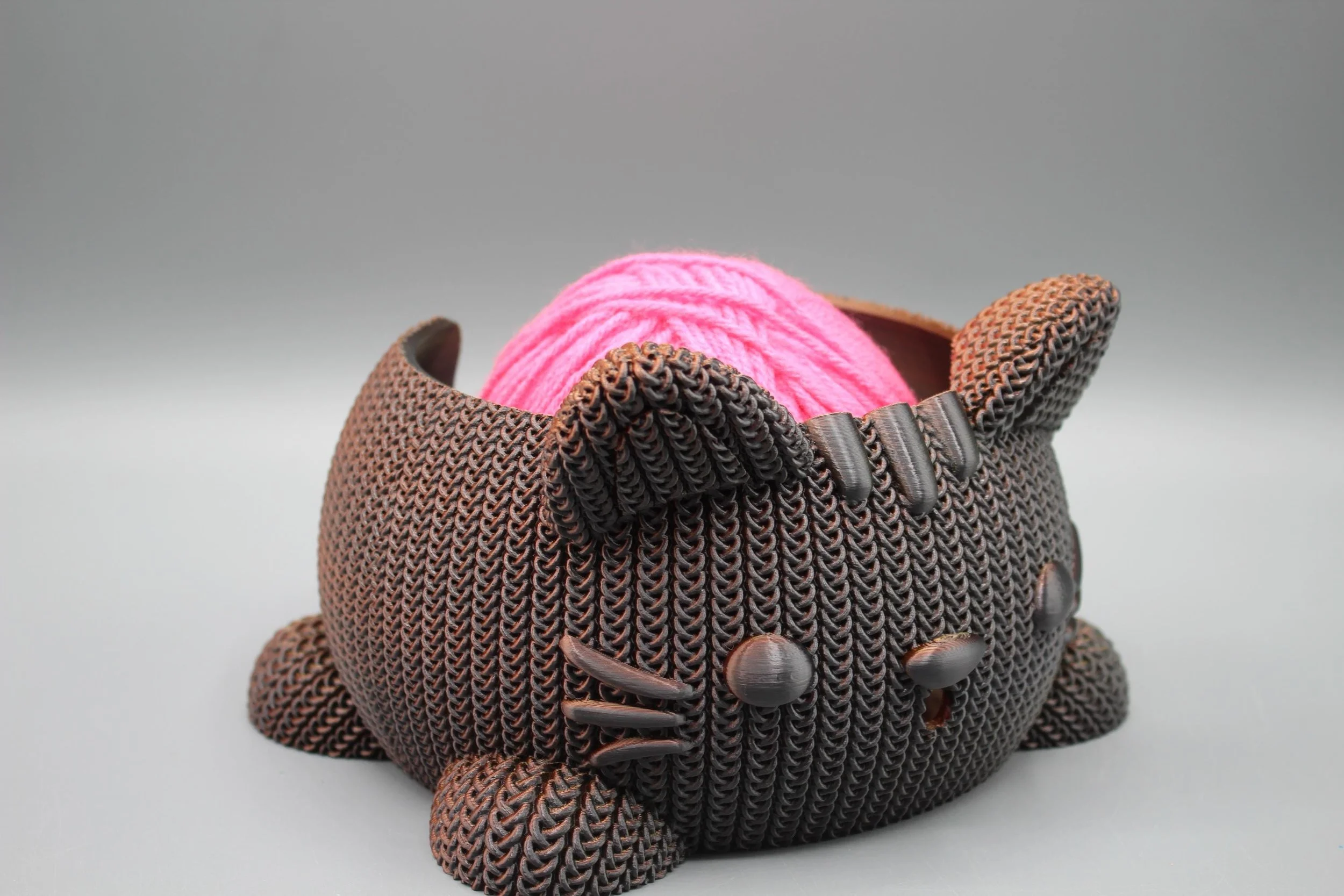 This 3D Printed Knitted Yarn Bowl Dog mimics the look of a knitted piece, with visible"stitches" and a textured surface. It can be printed in various colors to match your crafting style. Keeps yarn organized: Prevents tangles and messes while you work.