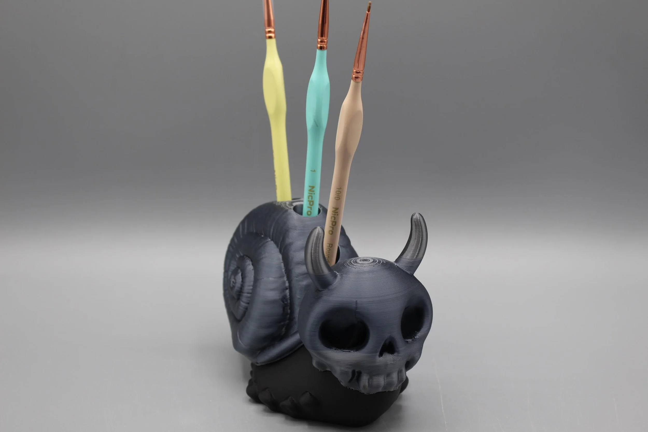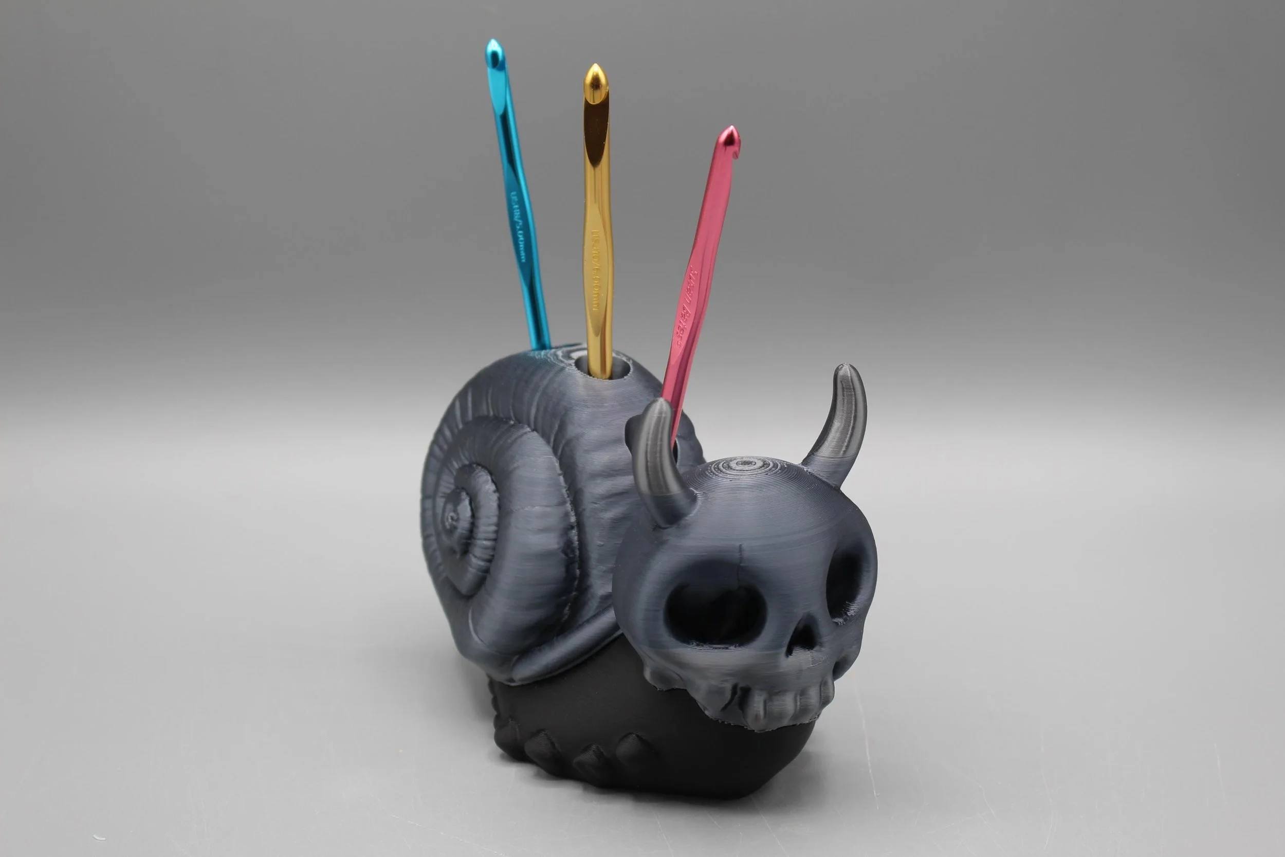 Unleash your creativity with our Spooky Skull Snail crochet hook/Paintbrush Holder! This whimsical accessory is perfect for keeping your paintbrushes or crochet hooks organized and within reach. Its unique skull motif adds a touch of fun and flair to your workspace, making it an ideal gift for artists and crafters alike. Elevate your art station with this delightful holder that combines functionality with a dash of spooky charm!