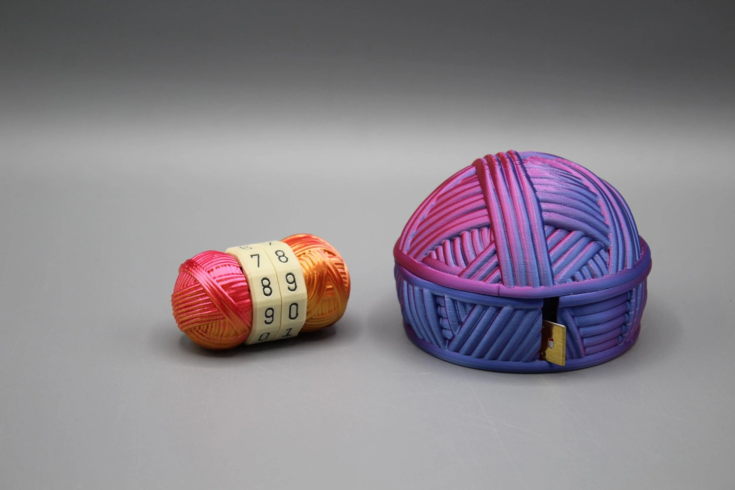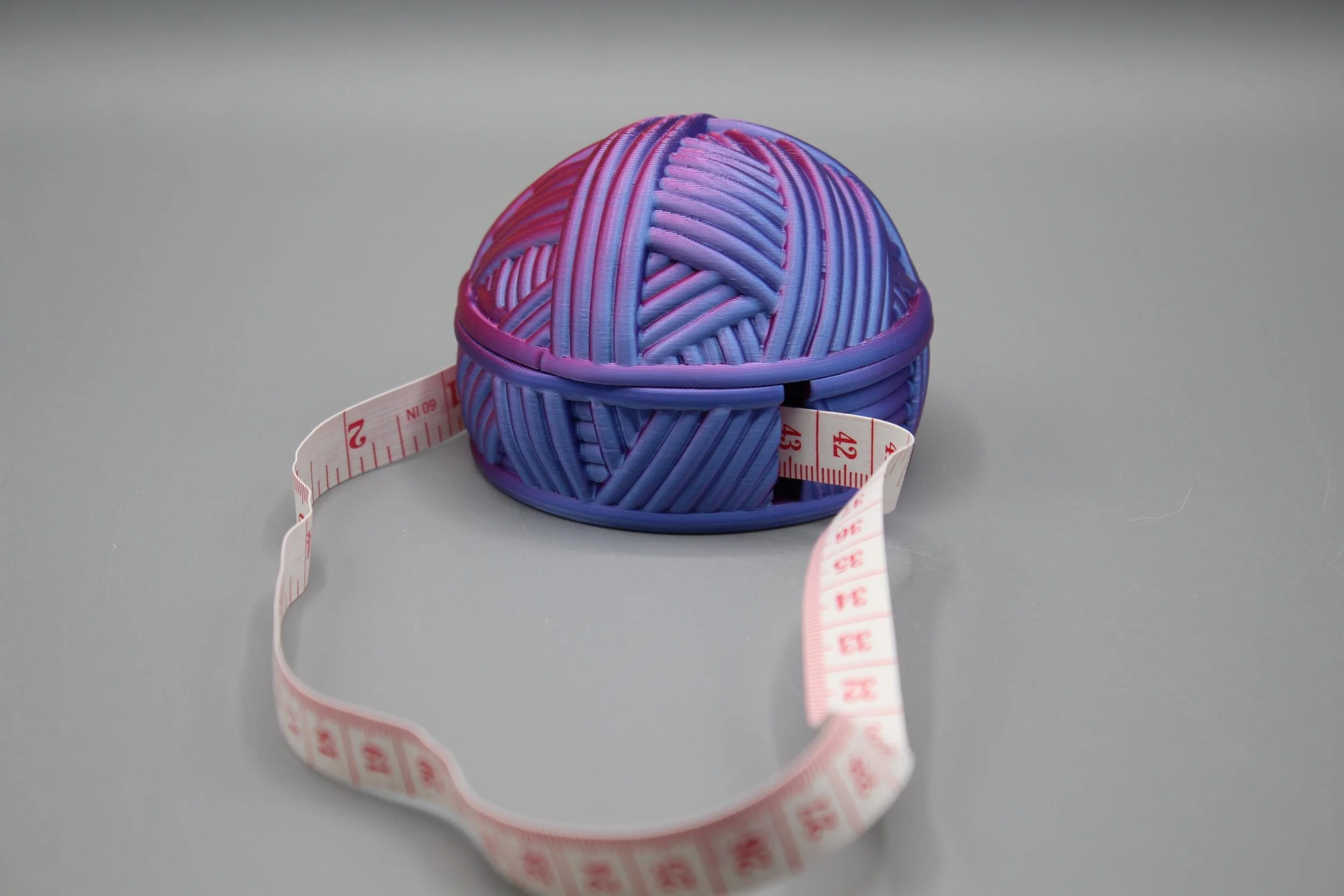 Listing is for both the yarn ball tape measure winder & the stitch counter. This yarn ball tape measure winder, is the unique gift for any crafter. whether it be sewing, crochet, knitting, quilting, etc... This stores, and rewinds that unruly plastic measuring tape. You pull out only the length you need and easily rewind it for easy storage. TAPE MEASURE INCLUDED Keep track of your stitches effortlessly as you work on your yarn projects. This handy tool is a must-have for anyone who loves stitching and wants to ensure accuracy in their craft. PLEASE NOTE: Rainbow and gradient filament will not turn out the same every time as it is dependent on where in the roll it is printing. The gradient in the picture may not be the same gradient of colors that comes out in the finished product.
